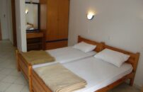 APT 1/4: smešteni su na prvom i drugom spratu i sastoje se od dve prostorije koje su odvojene lučnim prolazom (nisu odvojene vratima). U jednoj sobi je francuski krevet, TV, klima uređaj (uračunato u cenu) i izlaz na terasu, a u drugoj prostoriji su dva standardna ležaja, kuhinjski deo (frižider, rešo sa dve ringle, aspirator, električno kuvalo za vodu, posuđe i pribor za odgovarajući broj osoba), sef i kupatilo sa tuš kadom.